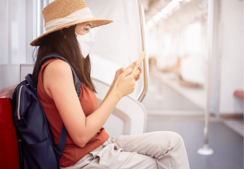 電車や飛行機などの移動時は微振動で安定しませんので必ず補助ベルトを装着してご利用ください。
